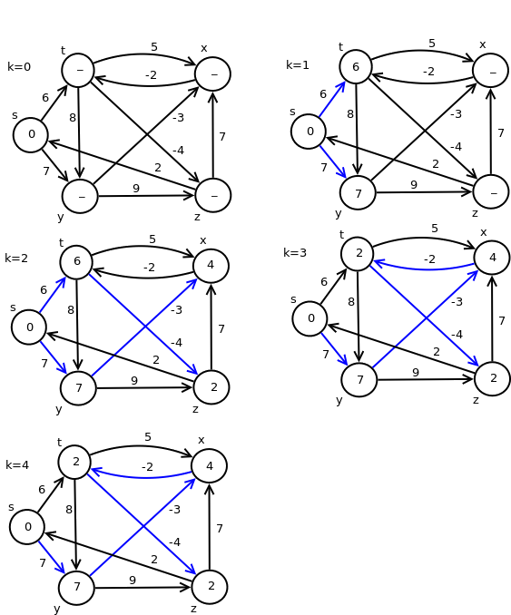 Primer 2.9.7. Na slici 10 ilustrovano je izvršavanje Belman-Fordovog algoritma.